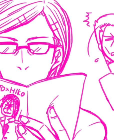 比古が読んでるのは斎藤さんの私物。津南に交渉したら快く描いてくれた上にハマってくれた。